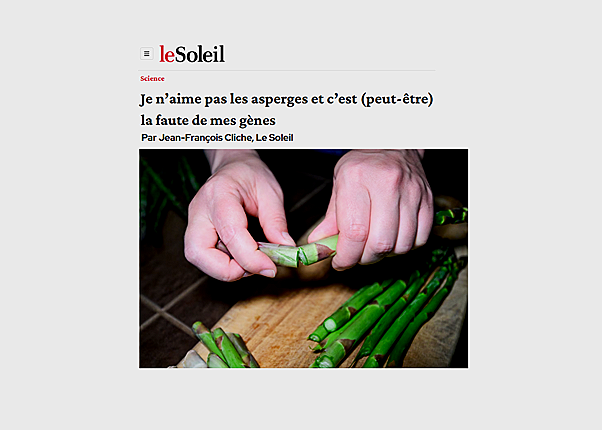 Un article de Jean-François Cliche sur l’influence de la génétique et les préférences alimentaires des enfants. Le journaliste a réalisé une entrevue avec Dre Véronique Gingras pour cet article.